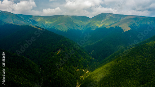 © czamfir, Fototapeta premium Aerial view of mountains covered with coniferous forests