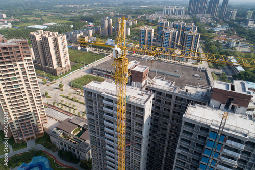 © lzf, Obraz premium Aerial view of multistory apartment construction site in China