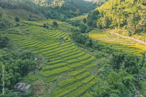 Fototapeta premium Aerial view of Nang Lae Nai Rice Terraces in Chiang Rai, Chiang Mai province,...