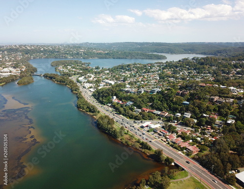 © katacarix, Fototapeta premium Aerial view of Narrabeen Lake. Sydney CBD in the background.
