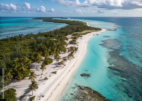 © Supittra, Obraz premium Aerial View of Nassau, Bahamas: Stunning Coastline with White Sand and Turquoise Waters for Paradise Beach Imagery