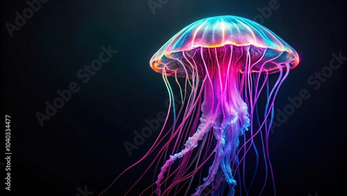 Obraz premium Aerial view of neon colorful jellyfish glowing in the dark