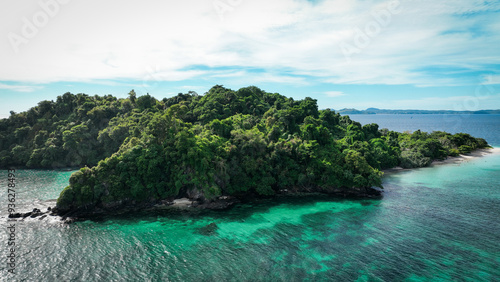 Obraz premium Aerial view of Nosy Tanikely island showcasing its lush greenery and tranquil...