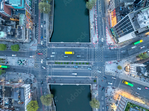 © Dorota, Fototapeta premium Aerial view of O'connel Bridge, Dublin, Ireland