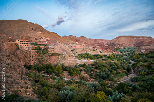 Fototapeta premium Aerial view of oasis and mountains in Dades Valley near Boumalne Dades...