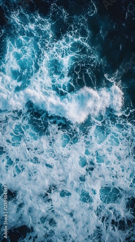 Fototapeta premium Aerial View of Ocean Surface with Crashing Wave and White Foam Texture Beauty