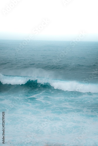 © ray, Fototapeta premium Aerial view of ocean waves, boats and sunset