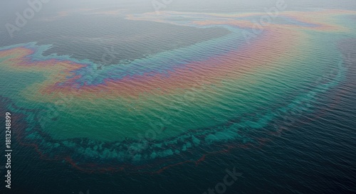 Obraz premium Aerial View of Oil Spill Rainbow Sheen on Ocean Surface