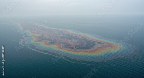 Obraz premium Aerial View of Oil Spill Rainbow Sheen on Ocean Surface