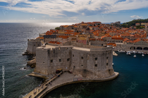 Fototapeta premium Aerial view of old city Dubrovnik in a beautiful summer day, Croatia. September 2020