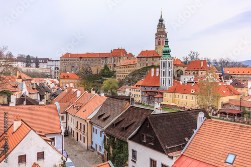 Fototapeta premium Aerial view of old Town of Cesky Krumlov, Czech Republic. UNESCO World...