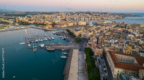 Obraz premium Aerial View of Ortigia Island in Syracuse, Sicily, Italy, Europe, World...