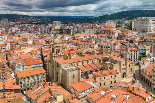 © Mazur Travel, Fototapeta premium Aerial view of Ourense Old Town and Cathedral in Galicia, Spain