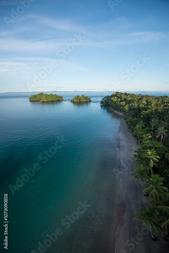 Obraz premium Aerial view of pacific sandy beach at Las Perlas Archipelago, Panama, Central...