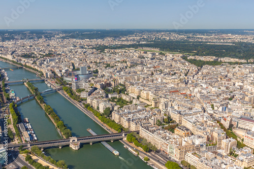 © Peter Stein, Fototapeta premium Aerial view of Paris Cityscape and Seine River