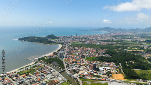 Obraz premium Aerial view of Penha, a coastal city in Santa Catarina, Brazil, showcasing...