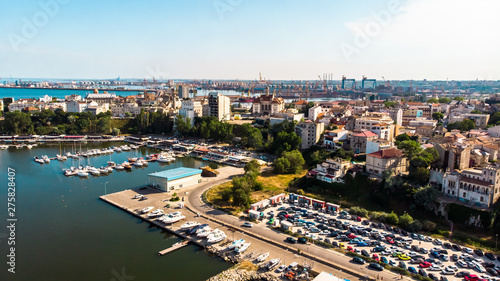 © Milan, Fototapeta premium Aerial view of port and old town in Constanta, tourist and industrial town and popular resort in Romania.