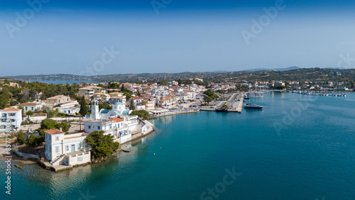 © Suzi, Fototapeta premium Aerial view of Porto Cheli, a luxury seaside retreat at the east edge of the Peloponnese peninsula, Greece