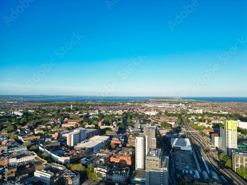 © Altaf Shah, Fototapeta premium Aerial View of Portsmouth City Centre, England United Kingdom. May 15th, 2024