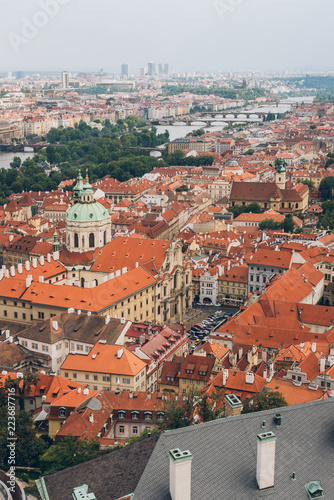 Obraz premium aerial view of prague old town cityscape with rooftops, Charles Bridge and...