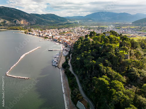© liliportfolio, Fototapeta premium Aerial View of Preveza, Greece — Coastal Town and Castle Forest