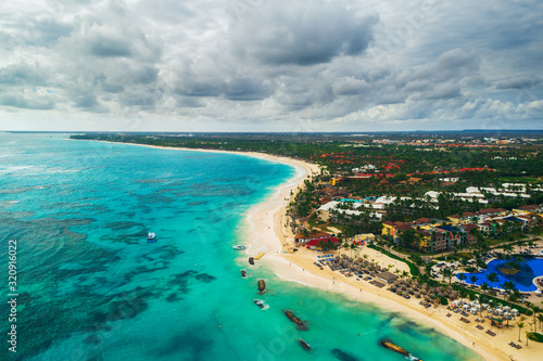 Fototapeta premium Aerial view of Punta Cana beach resort, Dominican Republic. Exotic island in...