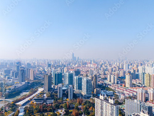 © Shengyi Lu, Fototapeta premium Aerial view of residential buildings in downtown Shanghai
