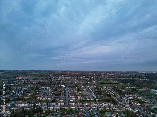 © Nasim, Fototapeta premium Aerial View of Residential Homes During Orange Sunset over England UK