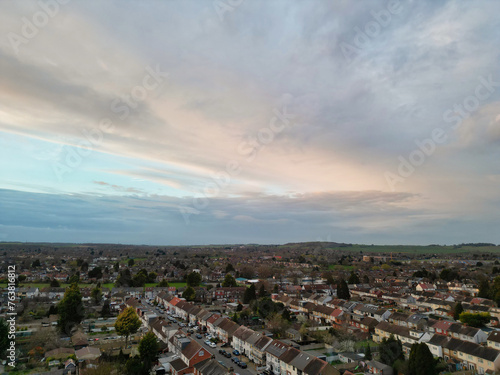 © Nasim, Obraz premium Aerial View of Residential Homes During Orange Sunset over England UK