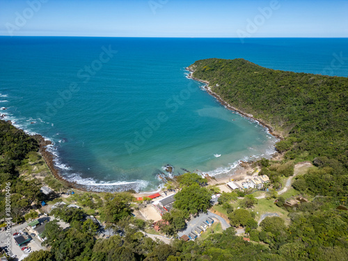 © lisandrotrarbach, Fototapeta premium Aerial view of Retiro dos Padres beach with sand, rocks and forest