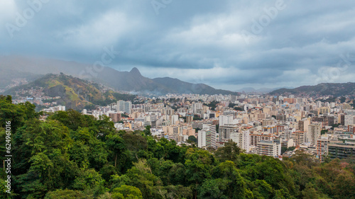 Obraz premium Aerial view of Rio de Janeiro on a cloudy day, in the neighborhoods of Tijuca...