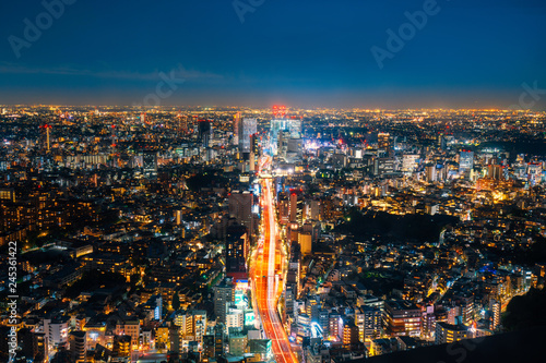 Naklejka premium Aerial view of road in Tokyo city, cityscape skyline.