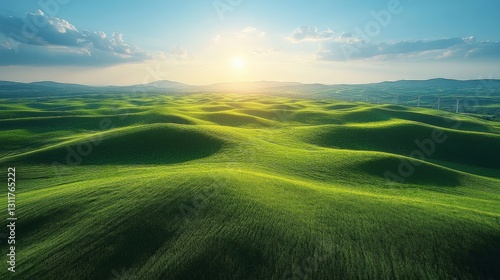 Obraz premium Aerial View of Rolling Green Hills at Sunset