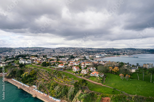 Naklejka premium Aerial view of Roundham Head and Goodrington Promenade from a drone,...