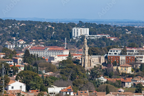 Fototapeta premium Aerial view of Saint Luc Church in Nîmes