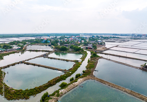 © pierrick, Fototapeta premium Aerial view of Salt farms in Phetchaburi province, Thailand