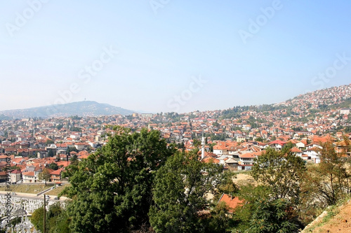 Obraz premium Aerial view of Sarajevo, Bosnia and Herzegovina, from Yellow Fortress on sunny day.