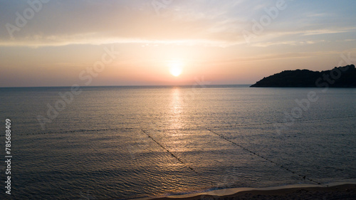 © FATIR29, Naklejka premium aerial view of sea waves hitting the beach