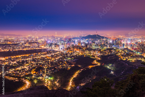 Naklejka premium Aerial view of Seoul City Skyline at Night,South Korea