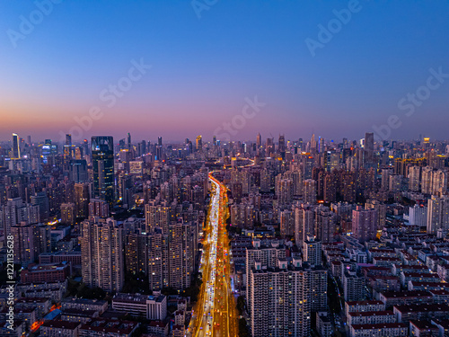 © shengyi, Obraz premium Aerial View of Shanghai skyline and neat residential buildings