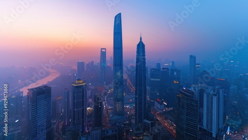 Obraz premium Aerial View of Shanghai Skyline at Sunrise