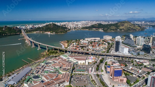 Obraz premium Aerial view of Shopping Vitoria, third bridge and Vila Velha city. Picture...
