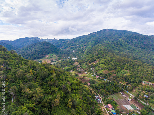 © komjomo, Obraz premium Aerial View of Small Village among Mountains.