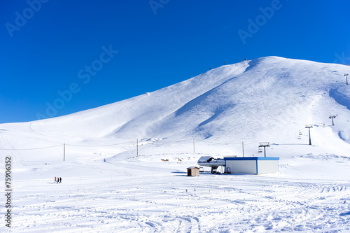 © ververidis, Obraz premium Aerial View of snowed mountain Falakro, in Greece.