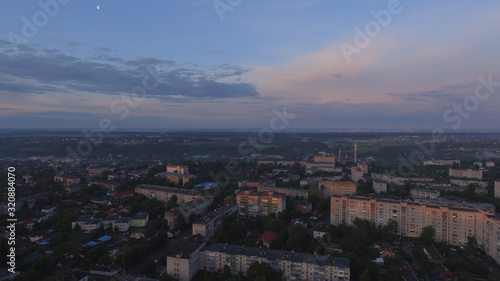 Obraz premium Aerial view of sunset in Zhytomyr city, Ukraine. Great sunrise.