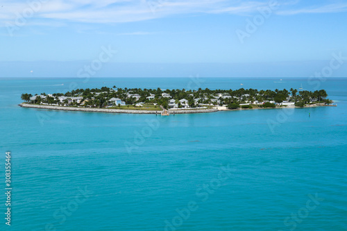 Obraz premium Aerial view of Sunset Key, a 27-acre residential neighborhood and resort island in the city of Key West, Florida, United States. It is located about 500 yards off the coast of Key West.