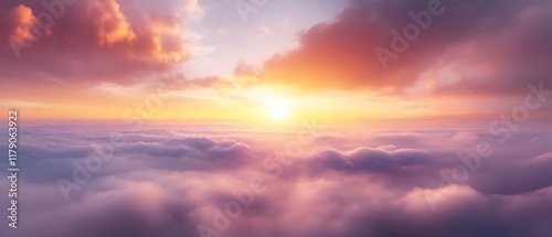 © Tumi, Fototapeta premium Aerial view of sunset over clouds.