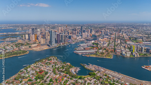 Obraz premium Aerial View of Sydney Harbour Balmain Darling harbour Sydney CBD cockle Bay...