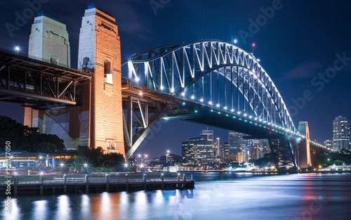 Naklejka premium Aerial View of Sydney Harbour Bridge: Dynamic Cityscape Background