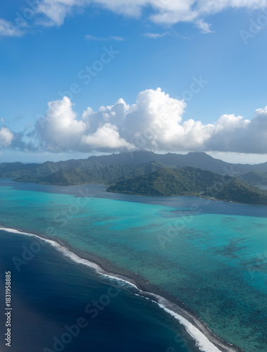 © daboost, Naklejka premium Aerial view of Tahaa island, French Polynesia, with turquoise lagoon and reef